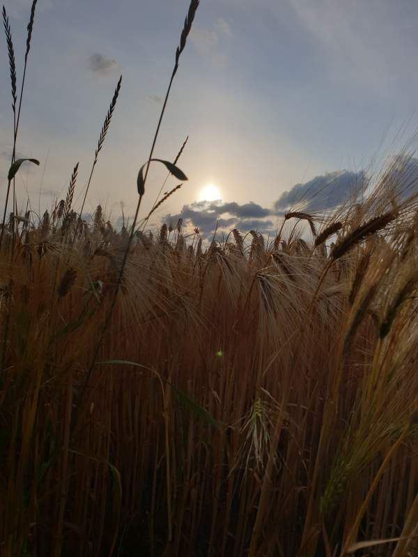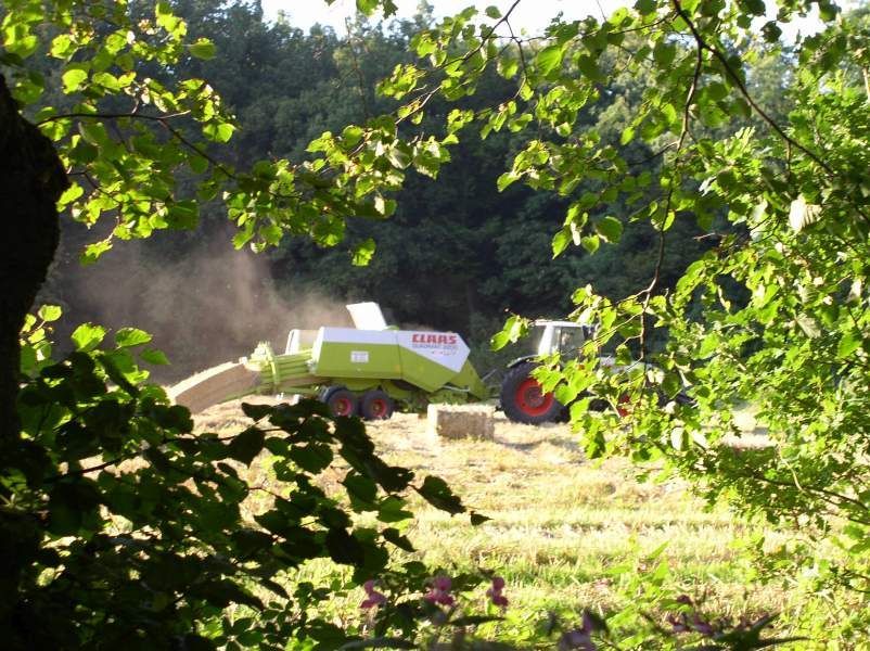 Bilder rechts: Getreidewagen, Wildgänse, Güllewagen, Sonnenuntergang vom Stuck aus